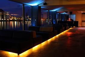 Les lieux d'abord sont époustouflants ! Le club, aux couleurs claires, est divisé en deux étages : le Waterfloor et le Hainfloor. Au premier, vous trouverez une vue imprenable sur la Spree, sur le pont, et sur le récent immeuble d'Universal. L'été, une terrasse située sur le fleuve est prise d'assaut par ceux qui, après s'être rencontrés sur le dancefloor, viennent partager un verre pour faire plus ample connaissance.