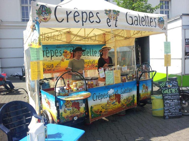 La crêperie ambulante Crêpes et Galettes se déplace entre différents marchés de Berlin pour y installer son stand et régaler les passants de ses différentes sortes de crêpes salées et sucrées. En ce moment, vous trouverez l'équipe au marché de Noël Lucia à la Kulturbrauerei. Crêpes et Galettes se déplace également à vélo et s'appelle à ces occasions, Die Berliner Fahrrad Crêperie que vous avez peut-être déjà croisée.