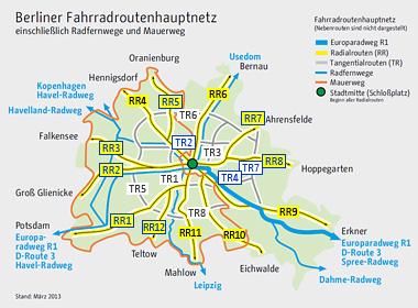 Dans la capitale allemande, les infrastructures sont presque idéales pour les cyclistes. L'ensemble de la ville est quadrillée de belles pistes cyclables, sûres et agréables. On peut les trouver sur les trottoirs, dans des voies partagées avec les bus, et même à contresens des voies pour éviter certains détours.