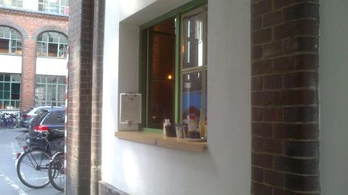 Niché sous le porche d'un hall d'immeuble, il faut faire preuve d'observation pour dégoter, très ce plus petit café de Berlin. Son nom, le "Concierge Coffee", indique tout simplement ce qui se trouvait à sa place, il y a plusieurs années, une ancienne loge de concierge, donnant ainsi une idée de la grandeur de ce lieu atypique.