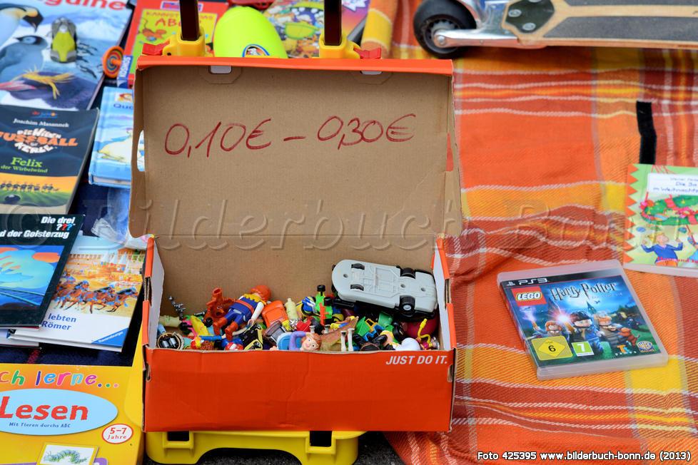 A notre tour d'aller brader nos affaires sur un coin de gazon. Une petite annonce sur le poteau du feu rouge annonce, quelle chance, que dans 15 jours la crèche d'à côté organise un vide grenier. Un coup de fil pour réserver et quelques euros plus tard (3.5 euro par mètre) nous voilà entrain d'entasser vêtements, chaussures et jouets dans la carriole qui porte notre bambin derrière le vélo (Fahrradanhänger en bon allemand) (c'est là que vous commencez à trouver des réponses à la question tant entendue ?une voiture à Berlin, mais pour quoi faire ??).