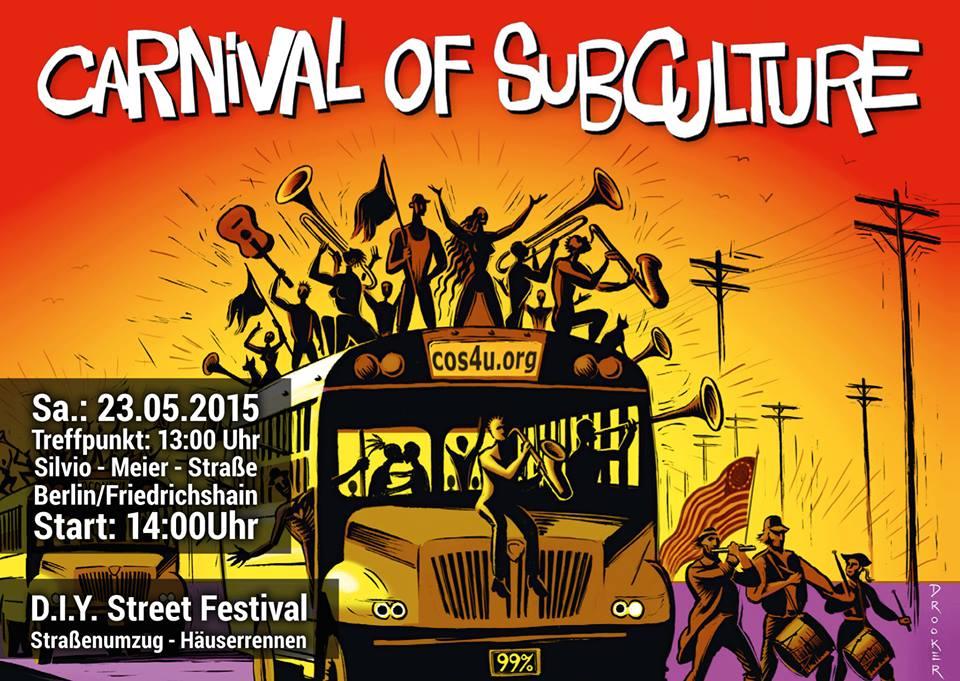 Pour ceux qui préfèrent une ambiance plus underground et beaucoup moins sage, depuis quatre ans se déroule en parallèle du Karneval der Kulturen, celui des Subkulturen organisé par différentes organisations d'extrême gauche. Avec un défilé qui se veut plus revendicatif et alternatif qui démarrera à 14 h depuis la Silvio Meier Strasse près du métro Samariterstrasse à Friedrichshain et des concerts dès 15h sur les scènes du Köpi, ce carnaval saura se démarquer du programme officiel. La parade se terminera sur le Schillingbrücke, près de l'Ostbahnhof, avec une bataille de vélos qui s'annonce spectaculaire. La soirée aura également lieu au Köpi dès 22h avec du Hip Hop, de la Punk au Koma F. et de la musique industrielle entre les murs de la cave des Katakomben. Toutes les infos ici : http://cos4u.org/index.htm