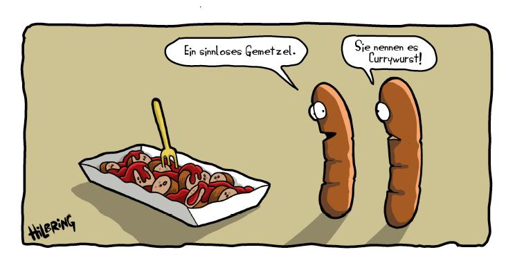 Que l'on vienne en simple touriste ou avec l'intention de poser ses valises pour un moment, impossible de passer à côté. On la vend partout. La Currywurst fait office de repas en cas de petite faim, d'encas en plein après-midi pour ceux qui n'ont pas la patience d'attendre le dîner, ou de remontant pour les clubeurs entre deux tours de piste. Ce plat très élaboré et diététique se compose d'une saucisse coupée en tranches, accompagnée d'un peu (beaucoup) de ketchup, de sauce Worcestershire et, comme son nom l'indique, saupoudrée de curry. Elle est en général servie avec une assiette de frites. Les plus chevronnés arroseront le tout d'une chopine de bière allemande. Bon appétit.