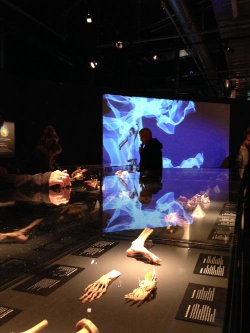Afin de survivre à Berlin, les commissaires du musée ont donc dû renoncer à certaines sculptures trop choquantes. La thématique du corps humain a été reliée avec celles du bien-être, de la maladie et du mode de vie. De ce point de vue là, on pourrait y voir un retour sur les bancs de l'école et particulièrement dans les cours de S.V.T.. Les vidéos interactives pour comprendre le phénomène du stress et les schémas exposés en vitrine, pour visualiser où se trouve les vrais organes, ne manquent pas. Une salle est par exemple réservée au célèbre reportage sur l'alimentation des familles dans le monde. Le message global pourrait être résumé par les mots latins de Juvénal : "Anima Sana In Corpore Sano" (un esprit sain dans un corps sain). Le sport, la nutrition, le sommeil et la maîtrise des plaisirs, seraient donc autant de clés pour atteindre le bonheur. Le professeur de philosophie Franz Josef Wetz, responsable du contenu, détaille en expliquant que les gênes influent à 50% sur notre bonheur, les activités à 40%, et les conditions de vie à 10%. Mais sa tentative d'associer les théories modernes aux maccabées suffira-t-elle à faire oublier aux berlinois la réalité de l'exposition ? "Ici la vie est représentée par la mort", explique-t-il. "Justement", a-t-on envie de lui répondre.