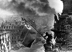 Drapeau soviétique flottant sur le Reichstag, Berlin, 1945
