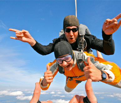 -Des sauts en tandem : C'est l'idéal pour effectuer un saut de découverte et expérimenter l'ivresse de la chute libre en toute sécurité. Il permet aux curieux et aux élèves potentiels de découvrir les sensations du parachutisme, sans le stress des méthodes de saut accéléré en chute libre. Le saut en tandem par définition consiste à sauter avec une personne expérimentée (un "Tandem Master"). Cette personne se positionne derrière le passager et utilise un matériel de parachutisme dimensionné pour supporter deux personnes en toute sécurité. Sautez à 2500 ou 4000 mètres d'altitude, accroché à un moniteur professionnel. Frissonnez pendant 60 secondes de chute libre et admirez la vue pendant 4 à 5 minutes de balade sous voile avant l'atterrissage.