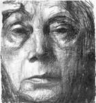 Au fil des années et de ses ?uvres, Käthe Kollwitz semble avoir apprivoisé la mort, tel un destin au devant duquel elle court ? comme nous tous. En 1935, elle dessine une vieille femme qui sent une main sur son épaule et est prête à la suivre. "L'appel de la mort"se fait entendre. Ses autoportraits, tels un journal intime, sont d'une honnêteté absolue avec le spectateur. Les rides apparaissent avec le temps. En 1934, à 67 ans, l'artiste se représente le regard triste, le visage