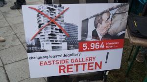 Depuis plusieurs jours, une pétition intitulée "East Side Gallery Retten ! Keine Luxuxwohnbebauung auf dem ehemaligen Toddestreifen" (Sauver l'East Side Gallery ! Pas d'urbanisations luxueuses sur l'ancienne zone de la mort) tourne sur les réseaux sociaux dans le but de mobiliser les Berlinois contre la démolition de plusieurs mètres du plus long bout du mur (1,3 km), conservé pour la mémoire. Trois associations, le collectif Mediaspree Versenken, le club commission (réunissant tous les clubs de Berlin), la Künstlerinitiative East Side Gallery (association des artistes qui ont peint et continuent de restaurer le mur) ainsi que de nombreux autres clubs se sont regroupés pour mener un combat de front contre le Sénat et la mairie de Kreuzberg-Friedrichshain, et tenter d'empêcher l'aboutissement de ce projet. Ils dénoncent avant tout la supercherie qui se cache derrière ce projet. Cette démolition, selon eux, profiterait, avant tout autre raison, au maître d'?uvre Living Bauhaus qui planifie de construire au bord de la Spree un immeuble de luxe haut de 63 mètres dans lequel les appartements ne seraient destinés qu'à la vente.