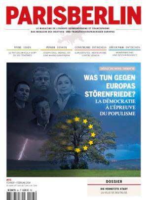 La crise de confiance qui traverse l'UE fait le bonheur des populistes et des eurosceptiques de tous bords. Dans leur ligne de mire : les élections du mois de mai et une possible percée au parlement européen. Décryptage et analyse dans notre débat du mois de février. Dans vivre, ?le pays de Dracula sort de ses ténèbres?, la Roumanie redore son image et attire à nouveau. Penser revient sur le compromis qui a suivi les élections en Hesse, le premier grand Land avec une coalition noire-verte au pouvoir. Dans construire, ?l'Allemagne a mal à ses routes? : pourquoi outre-Rhin, on a peu et mal investi dans les infrastructures de transport. Découvrir s'intéresse ce mois-ci au mécénat, quelles sont les entreprises qui soutiennent l'art en Allemagne et à qui profitent ces investissements ? Le dossier de février est consacré au ?Smart Cities? (villes intelligentes) et nous transporte dans la ville du futur.