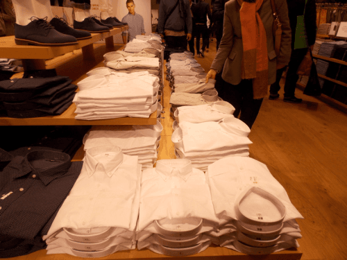 La spécialité d'Uniqlo ? Des vêtements de tous les jours de bonne qualité et à petit prix. Dans le magasin, vous trouverez un très grand rayon de chemise en coton, soie ou lin, de la même coupe mais en plusieurs coloris. C'est ainsi qu'Uniqlo se présente : les basiques de la garde robe de bonne qualité et dans toutes les couleurs ! Chemises, robes, t-shirts, polos, jupes et pantalons, jusqu'au chaussettes et linges de nuit.