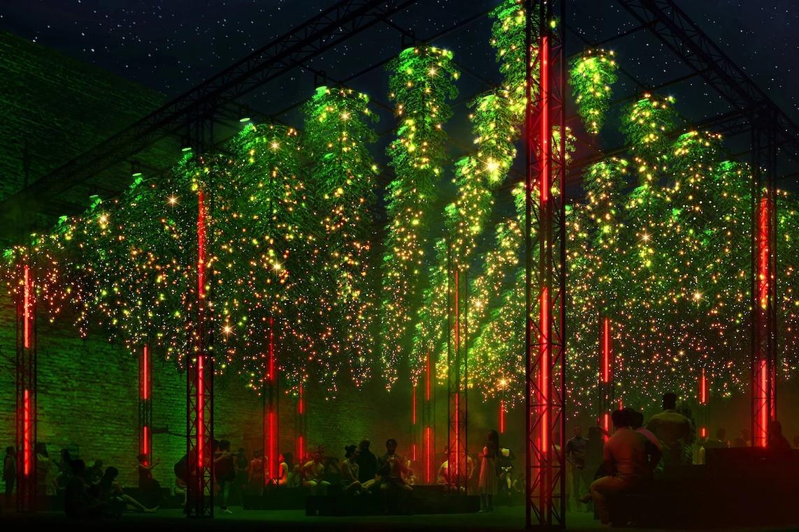 Dans l'enceinte extérieure d'une ancienne usine, Dark Matter crée une ambiance festive du mercredi au dimanche à partir de 17 heures. Cette installation magique de l'artiste Christopher Bauder se compose de 200 arbres ornés de plus de 80 000 lumières scintillantes. Ces arbres inversés s'illuminent en musique toutes les demi-heures jusqu'à 22 heures en semaine et jusqu'à 23 heures les vendredis et samedis.