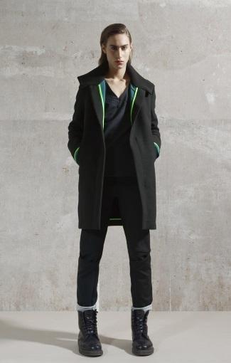 Après deux hivers à Berlin, Fabrice sait comme le froid peut affecter le style. C'est pourquoi, il n'hésite pas à utiliser l'intelligence des vêtements de sports qui maîtrise la chaleur du corps et des matières chic très urbaine. Et puis, surtout, des vêtements tous simple d'entretien: On retrouve dans sa collection des pantalons en cuir lavable en machine !