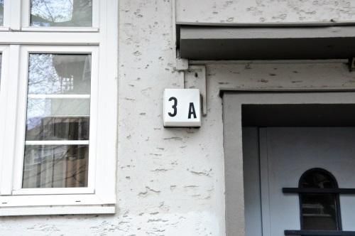 Mais ce n'est pas fini ! D'autres nombres peuvent être ajoutés, comme ceux des cages d'escalier ou des appartements. Ces numéros d'habitation en trois parties avec deux barres de fraction au milieu sont fréquents dans les quartiers du centre-ville. Dans certains cas, des lettres en majuscule peuvent également être insérées.