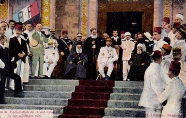 Durant la période du mandat français, (1920-1943), le drapeau du Grand Liban était basé sur la composition du drapeau français auquel un cèdre vert a été rajouté au centre.