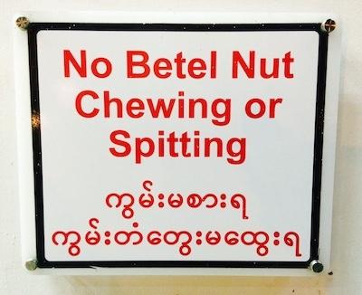 Il suffit de se promener à pied ou bien de prendre un taxi à Yangon ou ailleurs pour être rapidement sensibilisé à ce phénomène : des gens, de tous âges, qui mâchent une indescriptible mixture et qui recrachent régulièrement un superbe liquide rouge sur la chaussée.