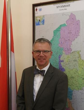 En 2011-2012, nous avons ouvert une ambassade à Yangon avec le sentiment que les choses allaient changer dans ce lieu. L'avantage d'avoir travaillé à New York avec les Nations Unies et ses 193 pays membres, c'est que l'on a une très belle vue d'ensemble du développement de la politique au niveau mondial ; on peut voir quel pays progresse, où est la stagnation et parfois où est le recul. Et de là-bas, j'avais constaté que le Myanmar avait des perspectives de changement assez fondamentales pour le lieux donc je trouvais cela intéressant de venir ici et de voir de près comment ce changement allait se passer. Et, en toute modestie et dans la mesure du possible, essayer de contribuer à ce que ce changement soit vraiment durable.