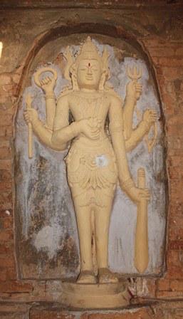 Le temple Abeyadana, construit par le roi Kyanzittha, est dédié à son épouse qui était originaire du Bengale. Les peintures murales illustrent plusieurs dieux brahmaniques : Siva monté sur sa monture Nandi, le taureau ou debout muni de six bras tenant ses attributs trident, massue, disque, chapelet ou lotus ; Vishnou tenant la conque et le disque, et chevauchant sa monture (Garuda) ; Brahma assis sur sa monture (Hamsa) et Devi (épouse de Shiva) sur sa monture (le lion) avec ses attributs (lotus et trident).