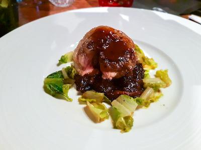 Heureusement pour moi, il y a un petit peu d’attente pour le quatrième et avant dernier plat. Il s’agit d’un Filet d'agneau grillé au charbon de bois. A l’approche du plat, les papilles se réactivent, la faim revient d’un coup. Et bien oui, là encore je n’ai pas été déçu. La viande est tendre et savoureuse. Un petit peu trop de gras à mon goût mais la portion est belle et se laisse savourer généreusement dans la bouche.