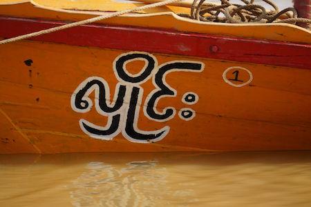 Sur la rive est échoué un petit bateau de bois, couleur bouton d’or ; son nom est peint à la main dans ce si bel alphabet birman arrondi ; la proue est ornée d’un bouquet de fleurs qui, à coup sûr, devrait le protéger contre la mauvaise fortune. Les plats-bords affleurent tout juste de l’eau sous le poids d’une colossale cargaison de sable, déchargée par une noria de femmes dans une chorégraphie d’une grâce touchante. Lourd panier sur la tête, les joues griffées de thanakha, les grands yeux noirs rêveurs, elles descendent avec une démarche de reines la passerelle incertaine qui ondule sous leurs pas souple, mouillent le bas de leur longyi dans un peu d’eau, et vident leur panier de sable quelques mètres plus loin.