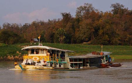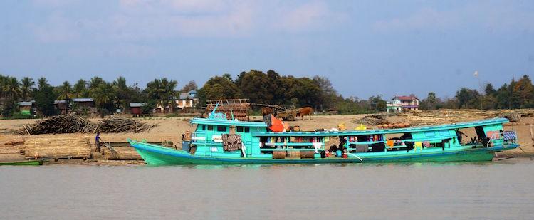 J’achète mon billet à une formidable matrone trônant à une table branlante et gagne la Shwe Lynn Leh, l’une de ces longues péniches étroites et bananées, aux flancs éclaboussés de couleurs vives. Il y a bien une poignée de cabines rustiques en tôle, avec du linoleum en guise de matelas, mais à quoi bon ? Les sacs de riz ventrus qui garnissent la soute feront une couche des plus confortables, à partager avec la douzaine de passagers souriants et attentionnés.