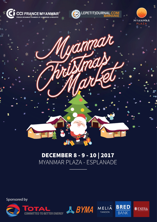 Organisé par lepetitjournal.com Birmanie et la Chambre de Commerce et d'Industrie France-Myanmar, le premier marché de Noël français de Birmanie prendra place sur l'esplanade du célèbre centre commercial Myanmar Plaza du 8 au 10 décembre 2017. L'événement, ainsi réparti sur trois jours, sera l'occasion pour tous de découvrir et partager l'esprit de Noël à la française. Ce sera aussi une occasion de développer la francophonie et de faire découvrir la culture française, tout en s'inscrivant dans une logique d'approfondissement des relations entre la France et la Birmanie. Près d'une quinzaine d'exposants proposeront une grande variété de produits, tels que bijoux, vêtements, artisanat birman ou encore de nombreux mets de choix. Pour tous les goûts et pour tous les budgets, le marché offrira à ses visiteurs, que l'on espère nombreux, une ambiance festive et magique, fidèle à l'esprit de Noël. De nombreuses animations gratuites seront organisées : outre les traditionnelles photos avec le Père Noël, les visiteurs pourront également assister, en fin d’après-midi, à plusieurs concerts avec des groupes tels que "Where Is Charlie" ou encore "The Original Black", ainsi qu'à de nombreuses activités concoctées par les élèves du Lycée Français International de Rangoon Joseph Kessel et de l’école maternelle Les Cahiers Dorés, qui en plus des traditionnelles chants de Noël, assureront divers ateliers tout au long du week-end. L'inauguration du marché de Noël aura lieu le 8 décembre à 17 heures, en présence de l'ambassadeur de France en Birmanie Olivier Richard ainsi que de plusieurs officiels birmans.