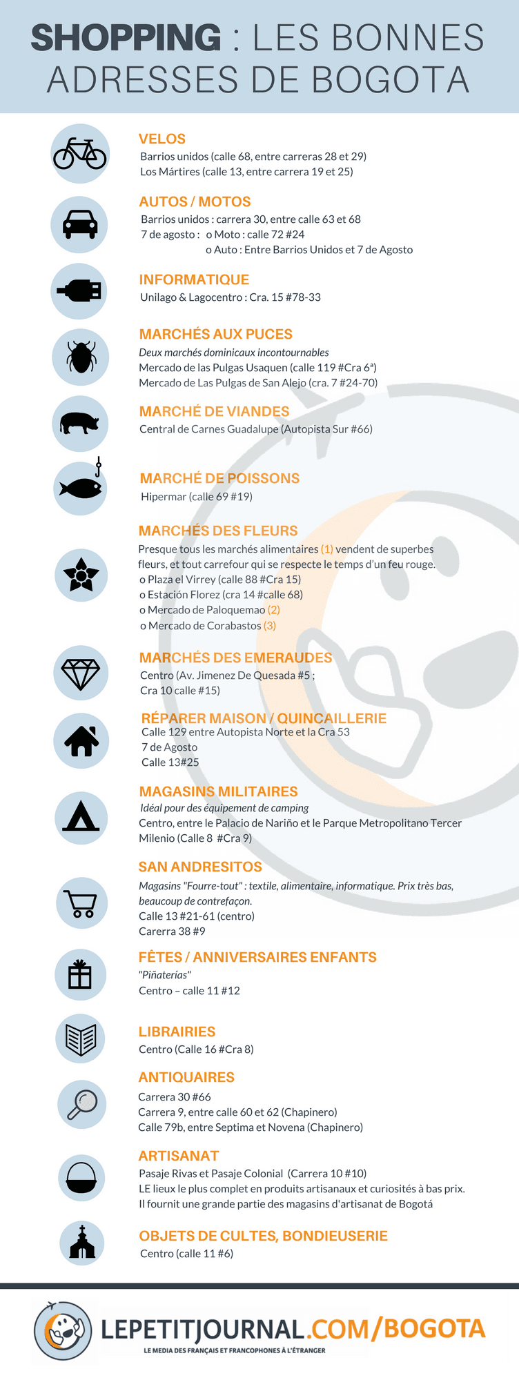 La capitale colombienne regorge de rues et quartiers dédiés à la vente de produits spécifiques qu'il est bon de connaitre. Cet article vous aidera à repérer en un rien de temps les bonnes adresses de Bogotá, quelque soit vos besoins !