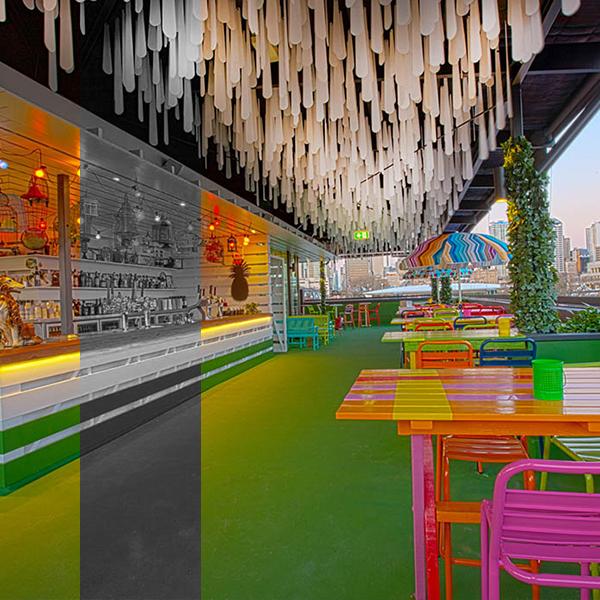 Le bar se décrit lui-même comme une aire de jeux pour adultes. Une carte de boissons variée, mais aussi une sélection de pizzas à partager. La vue est imprenable, l'ambiance est festive et on adore y retourner !
