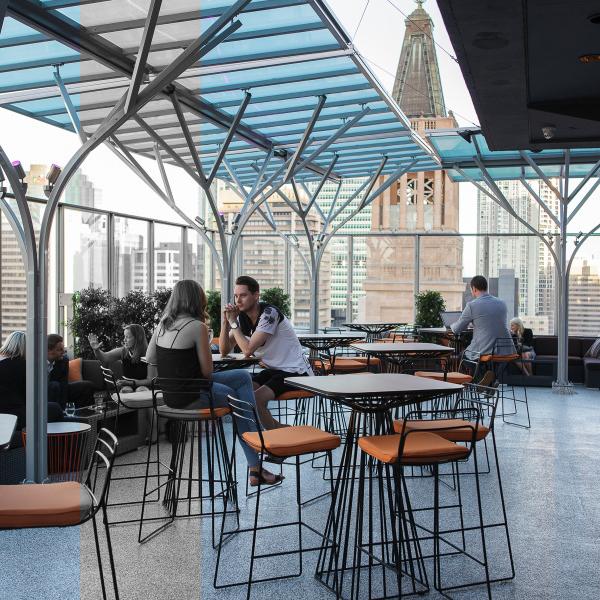 En face de King George Square et de la tour de l'horloge de la mairie nous vous invitons à siroter une bière artisanale et des cocktails raffinés et savoureux.