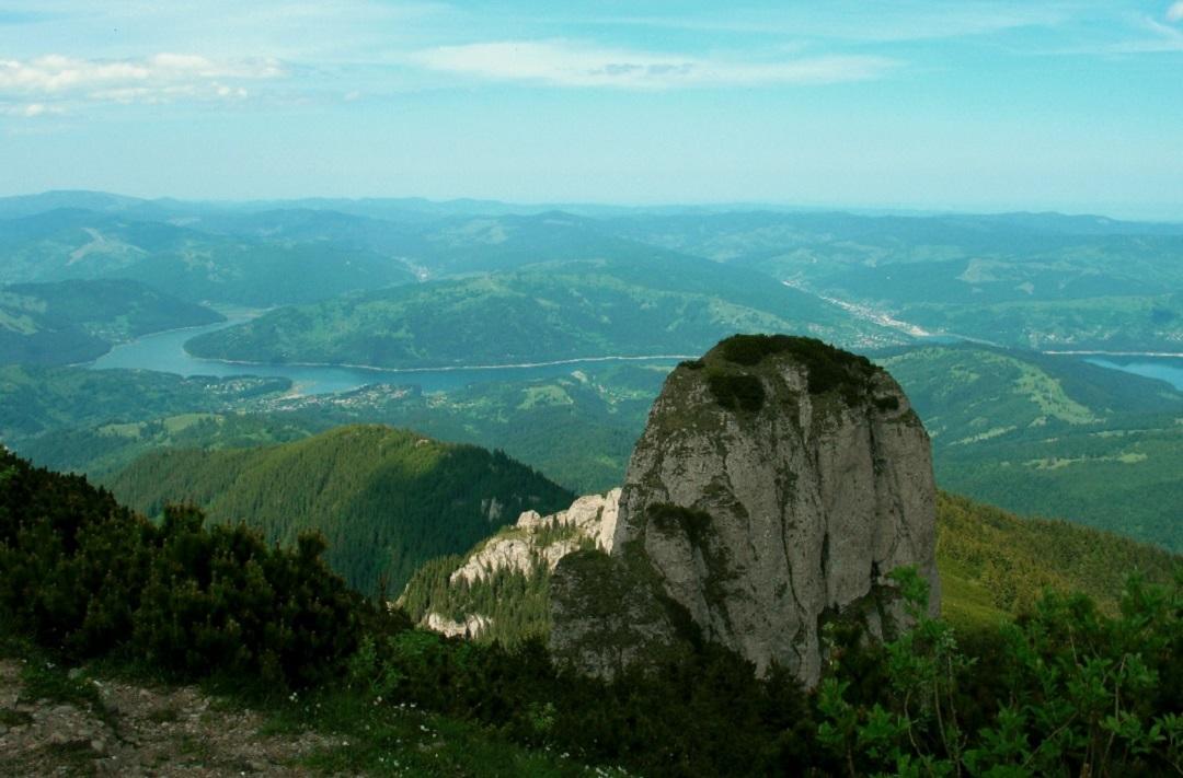En continuant le trajet, vous monterez doucement pour arriver au Col « La Morminte » (« Aux Tombeaux ») où vous trouverez un lieu aménagé pour faire une autre petite pause. A partir d’ici, la pente devient progressivement accentuée jusqu’à ce que le chemin atteigne un lieu dégagé d’où vous aurez un impressionnant point de vue sur les montagnes de Stânişoara bordées par les eaux du Lac « Izvorul Muntelui » (la Source du Montagne).