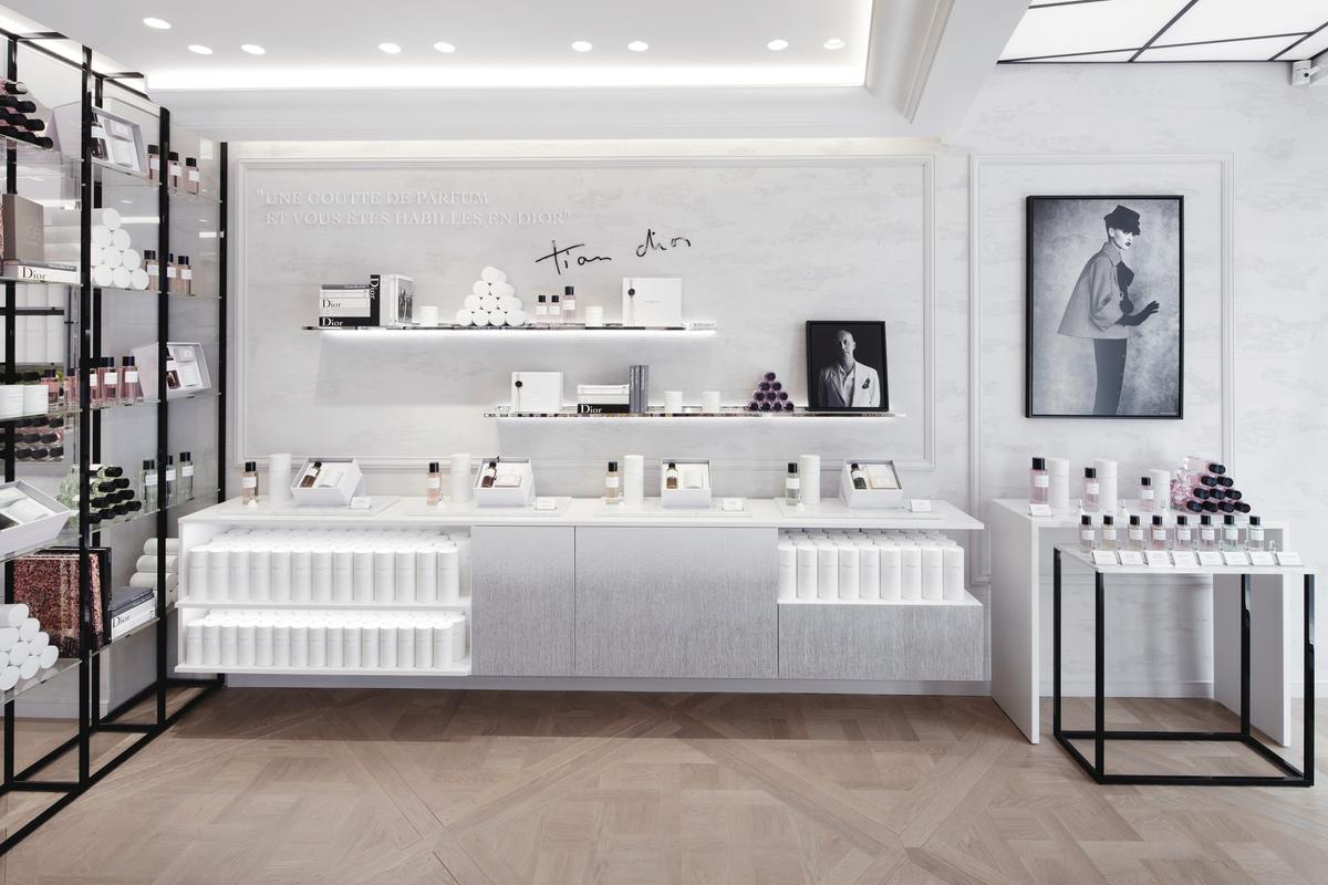 Cette adresse prestigieuse abrite une boutique soigneusement conçue dans les moindres détails pour accueillir un nouvel univers Dior entièrement dédié à l'amour du parfum, à un style de vie olfactif et à l'art du partage.