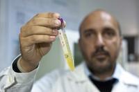 Nous travaillons dans deux directions différentes. L'une d'entre elles est la plus commune puisqu'elle utilise une protéine du sang animal et humain : l'hémoglobine. Le liquide produit est donc rouge et ressemble à celui sur lequel travaillent d'autres équipes de chercheurs dans le monde. La deuxième direction est par contre totalement novatrice puisqu'elle utilise des protéines qui proviennent de vers marins, qu'on retrouve également dans certaines bactéries. Le liquide qui en résulte est donc incolore et nous sommes actuellement les seuls à explorer cette piste. Pour l'instant, ces deux versions offrent des résultats similaires.