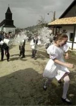 Jeunes gens arrosant une jeune fille (Photo www.hungaria.org)