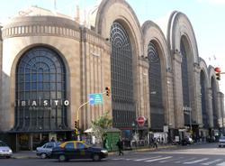 A la fin du 19e siècle, Buenos Aires connait une expansion fulgurante. Alors que les immigrants affluent d'Europe, la ville se dote rapidement d'un énorme marché de fruits et légumes : le Mercado central d'Abasto (de abastecer : approvisionner). Les premières Halles, et leurs superbes structures métalliques, sont inaugurées en 1893 et leurs alentours - zone rurale à l'origine - s'urbanisent à vive allure en un quartier populaire, juxtaposition de « conventillos » (maisons collectives), cantines et bistrots. Animé nuit et jour, il héberge une des figures consulaires de l'Argentine, le chanteur de tango Carlos Gardel. « Carlitos » fait ses débuts sur scène dans le bar O'Rondeman face au marché et s'installe avec sa mère dans une bâtisse rue Jean Jaurès (aujourd'hui maison-musée). Constitué d'entrepôts, l'Abasto ne cesse de croître et de se moderniser. Dans les années 1920, le marché est encore insuffisant et un nouvel édifice voit le jour en 1934 : c'est l'actuel bâtiment avec ses splendides voûtes en béton et pavés de verre. En 1984, du fait de la congestion urbaine, le marché central est relégué à la périphérie de la capitale. Après une période d'abandon, l'Abasto est reconverti en « shopping » cerné de tours de logement et d'un hypermarché (1998). Un quartier hétéroclite et coloré Pour en goûter l'atmosphère, le café « notable » « El banderín » et ses fanions de clubs de foot, est le meilleur rendez-vous, choisi par Marie Sinizergues, architecte française et habitante des lieux depuis dix ans. « Ici, je m'étonne tous les jours de cette incroyable diversité. Les hôtels de luxe et auberges de jeunesse côtoient les pensions de famille désuètes et les maisons délabrées. » Sa balade nous entraîne par la rue Guardia Vieja, devant des tours de 28 étages, en face de charmantes demeures anciennes, « d'un tout autre gabarit »? Le centre commercial se traverse alors car une place publique (en fait couverte et à 4,5 m du niveau de la rue?) y était prévue de longue date. De l'autre côté, rue Anchorena, l'« Esquina de Carlos Gardel » fait partie du circuit touristique haut de gamme, tandis qu'à quelques mètres des gamins jouent au foot dans la rue piétonne.