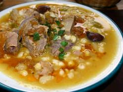 Dans cette même eau, le jour suivant, mettre à bouillir les saucisses coupées en morceaux, avec le maïs et les haricots (cuits mais fermes). Ajoutez également le lard, la viande de veau coupés en morceaux et les côtes de porc. Ne pas saler, sauf à la fin, si cela est nécessaire. Le tout doit bouillir une dizaine d'heures, ou jusqu'à ce que la préparation épaississe.