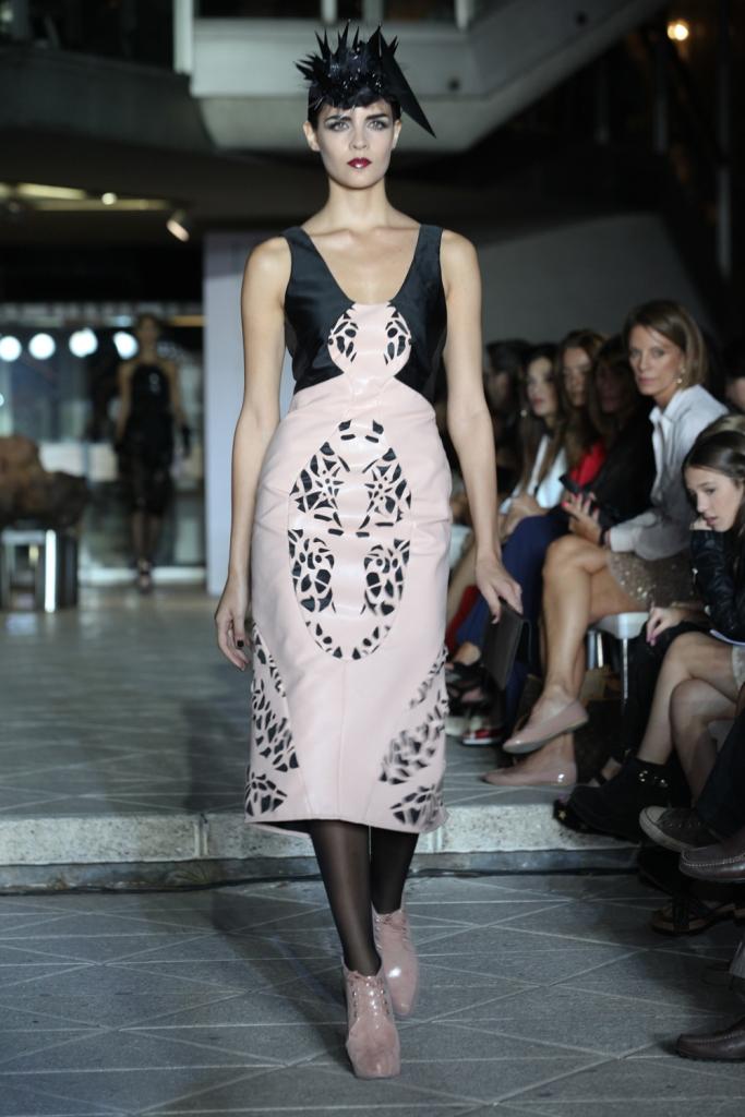 Cette collection basée sur le noir, blanc et rose poudré est étonnante par ses différentes matières juxtaposées, Fabian Zitta joue entre le rigide et le souple, crée quasiment de la dentelle de cuir et de vynil. Il rajoute des cristaux noirs qui renforce la particularité de cette collection, un mélange d'ancien et de nouveau, une conception futuriste de la femme élégante qui n'est pas sans nous rappeler le style" coco".
