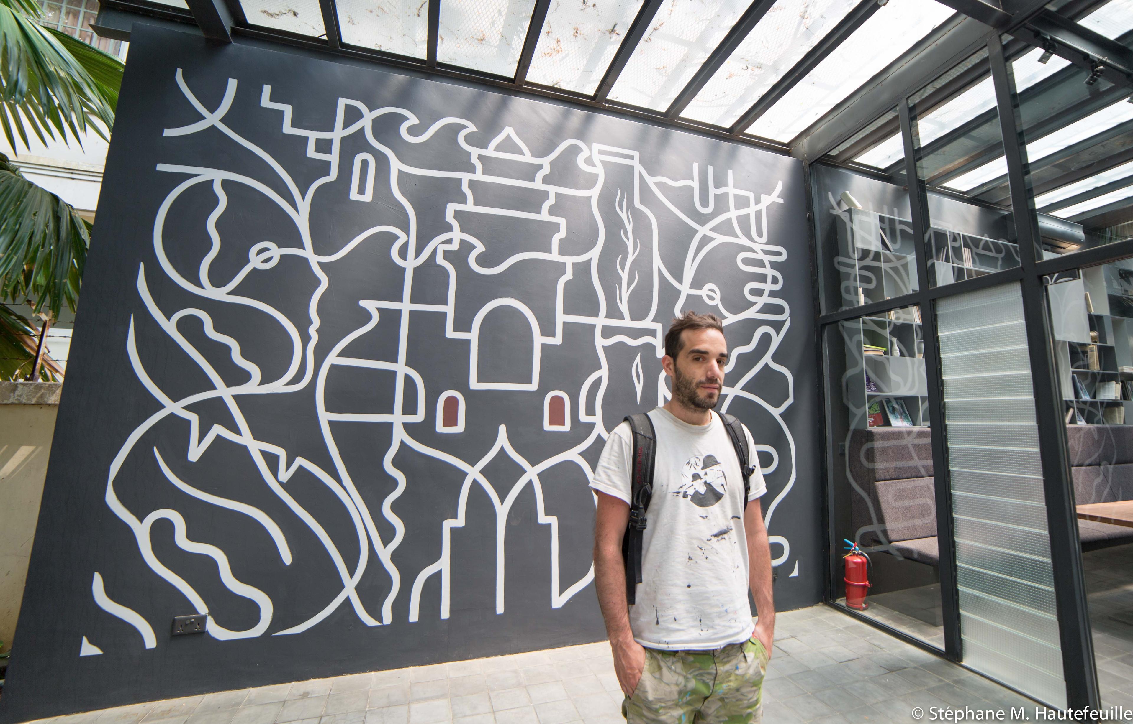 Nous nous étions déjà rencontrés lors d'un festival il y a six ans, je peins depuis douze ans sur les murs bien sûr mais aussi des tableaux et des sérigraphies dans mon atelier à Avignon."