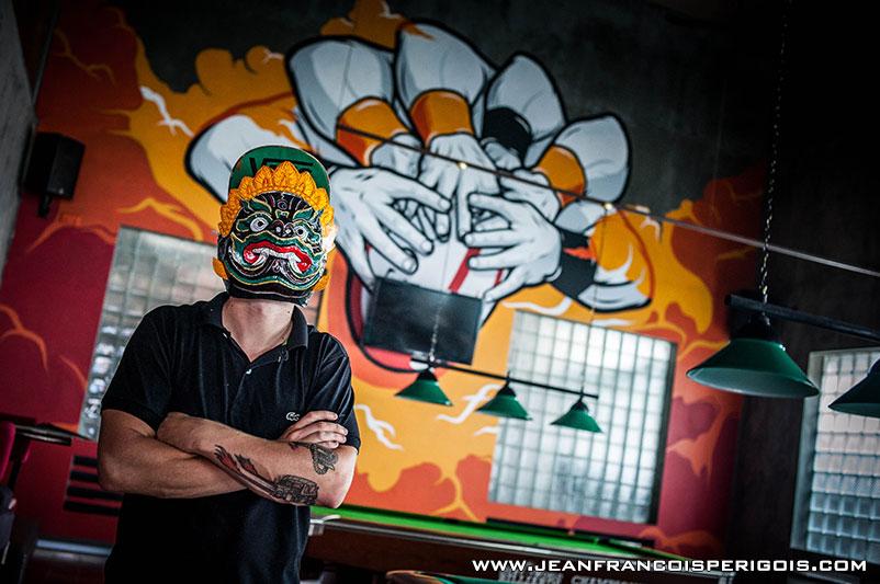 Goddog : "Je suis venu un an et demi au Cambodge il y a déjà quelque temps, Chifumi m'a invité à participer au festival j'ai répondu à l'appel sans aucune hésitation car nous partageons tous deux la même passion pour l'art et la population asiatique.