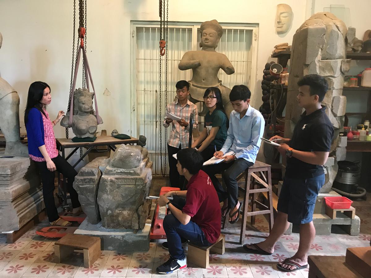 Chea Socheat est conservateur de sculptures au MNC et se penche plus spécialement sur la documentation des ?uvres et les recherches de terrain ; Khom Sreymom est davantage spécialisée dans la pratique de l'estampage. Ils reçoivent également des étudiants et des chercheurs tels que le Dr. Christian Fischer, de l'Université de Californie à Los Angeles (UCLA) qui est géologue spécialiste des grès employés pour la statuaire dans la région ainsi que des sciences appliquées à la conservation et à la restauration.
