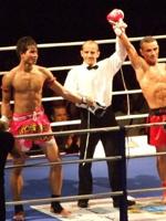 Les deux champions cambodgiens E Pouthang et Meas Chantha ont tous les deux été battus par leurs adversaires respectifs au cours de la Nuit des Gladiateurs, une soirée de boxe organisée à Bercy (Paris). Malgré la défaite des deux combattants, la boxe khmère ou Kback Khun Khmer a gagné ses premières lettres de noblesse sur la scène internationale. E Pouthang, star incontestée de la boxe cambodgienne mais absent des rings depuis plusieurs mois n'a pas réussi à combler son retard physique sur son adversaire, le boxeur français Aurélien Duarte. Une revanche est déja prévue. De son coté Meas Chantha n'a perdu que de deux points un match pour le moins contesté, son adversaire Totoff ayant refusé au dernier moment, et revenant sur l'accord préalable, un combat autorisant les coups de coude, spécialité des boxeurs khmers. La communauté cambodgienne, environ 2.500 personnes se sont déplacées pour ce combat, aura néanmoins pu admirer le courage physique des deux boxeurs cambodgiens qui n'ont ni abandonné, ni été mis KO, ce face à des combattants de classe internationale. Une première réussie donc pour la boxe cambodgienne sur les rings internationaux.