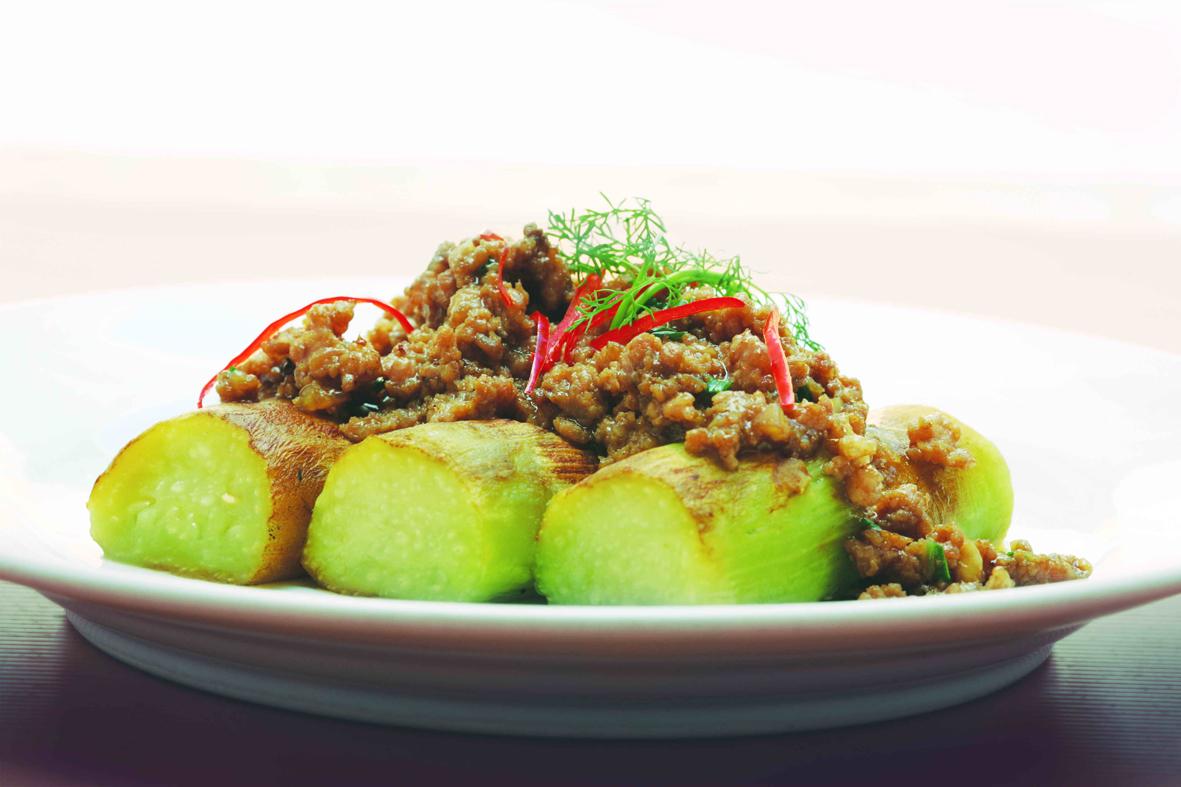 Le plus populaire auprès des clients (à part le Amok) : Aubergines grillées au porc et à la coriandre