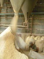 Du paddy déchargé dans une usine de la province de Battambang. (Crédit photo : Laure Delacloche)