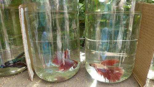 Détail révélateur : les bocaux où évoluent ces poissons longs de quelques centimètres sont tous séparés par une mince feuille de carton. Comme son nom le révèle, l'agressivité est un trait de caractère marquant du combattant. La paroi retirée, le poisson montre des signes d'agitation à la vue de ses congénères, déploie ses ouïes et ses nageoires, dans une chorégraphie menaçante. Ce comportement, ainsi que sa silhouette élégante, avec des nageoires formant voilure, explique la fascination que suscite l'animal.