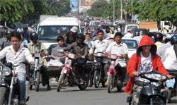 Et Eang Sokden s'apprête à rejoindre cette course contre la mort quotidienne. Pour le moment, il se contente d'être bon dernier, laissant passer voitures et motos pressées de se rendre à leur destination. Le bruit de la circulation est très impressionnant. Les klaxons résonnent, et il est clair que les silencieux ne sont pas de cours dans le Royaume. "Klaxonne! Klaxonne! Klaxonne!", le moniteur Phoa Sok Khourn le répète à l'envie, soucieux de ne pas rester à l'écart du tintamarre ambiant, il fait signe à son élève de s'y mettre, et d'appuyer sur le klaxon, "Ils pourraient ne pas se rendre compte que nous sommes derrière eux." Et même si la camionnette d'une tonne et demie ne passe pas vraiment inaperçue, Sokden se rend à la logique de son instructeur, et fait retentir une sonnerie des plus curieuses : honk hnk hnk... honk ? Phoa Sok Khourn est content, son klaxon sonne bien ! Et la camionnette accélère alors que son conducteur prend de l'assurance. Le moniteur continue de bavarder comme si de rien n'était, alors que le véhicule s'engage sur la nationale 6, une route connue comme une des plus dangereuses.