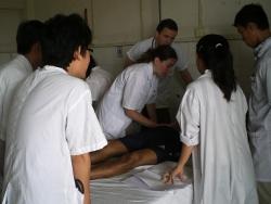 Les deux étudiants ont obtenus un tout autre statut en arrivant au Cambodge. Lors de la visite médicale, une hiérarchie claire se dessine. Les médecins, reconnaissables par leur badge avec leur photo et leur nom, restent les exemples qu'il faut suivre pour les étudiants khmers. Viennent directement après, les stagiaires français. Les internes cambodgiens, eux, sont là en spectateurs. "J'écoute ce qu'ils disent, je peux apprendre beaucoup d'eux. Ils connaissent plus de choses que moi, j'en suis sûre", explique une étudiante khmère. Elle a pourtant un an d'étude de plus que les deux Français.
