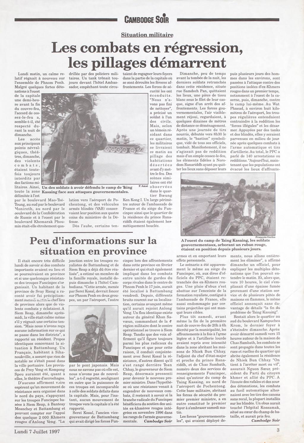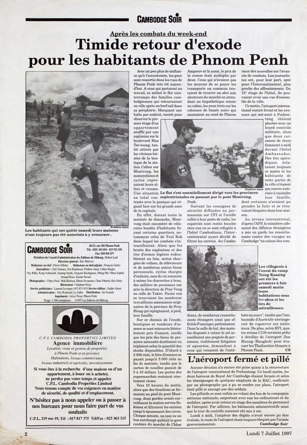 Les événements de juillet 1997 ont transformé le paysage politique qui perdure aujourd'hui. Lepetitjournal.com vous propose un retour sur ce tournant historique avec un témoin de l'époque, Pierre Gillette en ce temps-là rédacteur en chef de Cambodge Soir, un journal qui, concours de circonstances, prit une autre dimension au moment des faits.