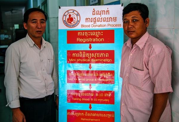 "Quand je suis arrivé au Centre National de Transfusion Sanguine en 1994, nous récoltions entre 3.000 et 5.000 poches de sang par an" déclare le docteur Hok Kim Cheng, directeur du Centre National de Transfusion Sanguine (CNTS) de Phnom Penh. À titre de comparaison, la même année le Luxembourg récoltait près de 22.000 poches alors que la population de ce pays était de 400.000 individus contre 11 millions au Cambodge.