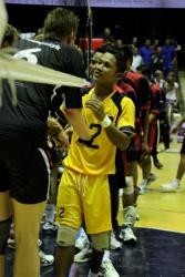 Le numéro 12, Cherm Kong, s'élance vers le filet et smash. Il égalise. Les tam-tams s'accélèrent, les supporters se lancent dans une hola endiablée, les clameurs de la foule raisonnent dans l'arène. On assiste alors à une formidable remontée du Cambodge qui enchaîne 10 points gagnants. Un homme traverse le terrain brandissant un drapeau Khmer. Le Cambodge s'impose 28 à 26.