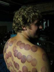 Shane est alors invité à pénétrer dans l'une des trois chambres de la demeure. Ce canadien de 21 ans voyage en Asie depuis presque une année. Arrivé à Koh Kong après avoir visité Phnom Penh, il a décidé de s'offrir un moment de relaxation à la sauce khmère. Il n'a pas choisi n'importe quel massage : c'est le fire cupping qu'il s'apprête à tester. ''J'ai vu plusieurs personnes avec des marques dans le cou et sur les épaules'', raconte-t-il. ''Elles m'ont expliqué que c'était dû à ce type de massage et j'ai voulu expérimenter par moi-même''. La technique consiste à chauffer des pots, en verre ou en plastique, que l'on pose ensuite à l'envers sur la peau. L'air, en refroidissant, crée un vide relatif et la peau est aspirée par effet de ventouse. Un suçon thérapeutique en somme. Souvent associé à la médecine chinoise traditionnelle, le massage par ventouse est ou a été pratiqué à différents endroits du globe. En France, son utilisation est attestée par le premier dictionnaire de l'Académie Française de 1694 où il est décrit comme un moyen ''d'attirer le mauvais sang''. Employée pour traiter des affections aussi diverses que la constipation, les migraines, les tendinites et les problèmes de peau, la technique revient au goût du jour en Occident.