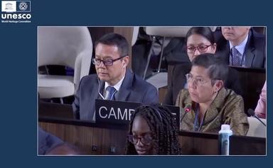 Statue monumentale de « phtel », en marbre de Pursat, à l’entrée de la province de Pursat (Phoutisat) (Source : Wikipedia)