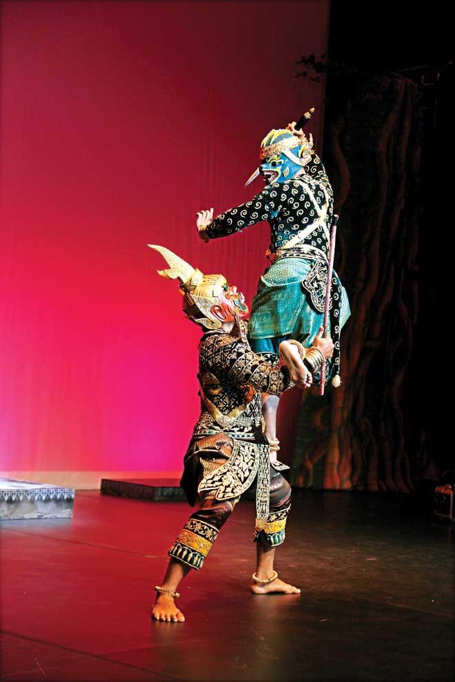 A Hong Kong, Khon « Mo » Chansithyka, 26 ans, et son frère cadet Khon « Nan » Chansina, 24 ans, qui jouent respectivement le singe et le géant lors d'une scène de la danse masquée Lakhon Khol, jouent pour la seconde fois avec le Ballet Royal, et font leur première apparition à l'étranger.